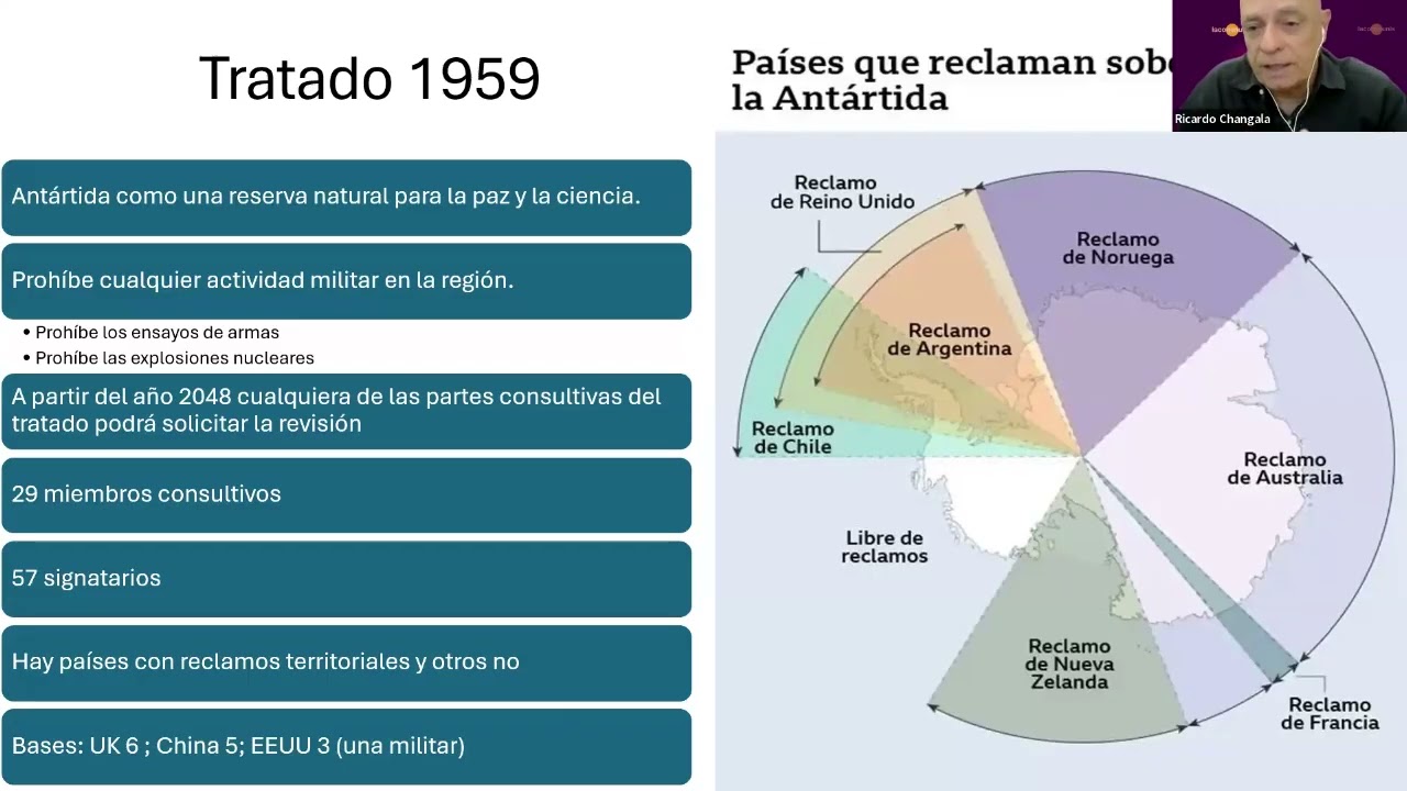 Uno de los escenarios más complejos del presente es el de la zona ártica, donde confluyen intereses militares, políticos y económicos de las grandes potencias afectando a muchos otros países. Hasta el momento, los hielos del sur no se mencionan entre los grandes ejes conflictivos del mundo, pero ello será por poco tiempo. La Antártida tiene riquezas apetecibles para muchos por lo que el actual estatus de lugar de paz, sin guerras ni extractivismo difícilmente se mantenga mucho tiempo. Para los países del sur, el tema es de alta relevancia y merece se atendido con tiempo y de manera estratégica.